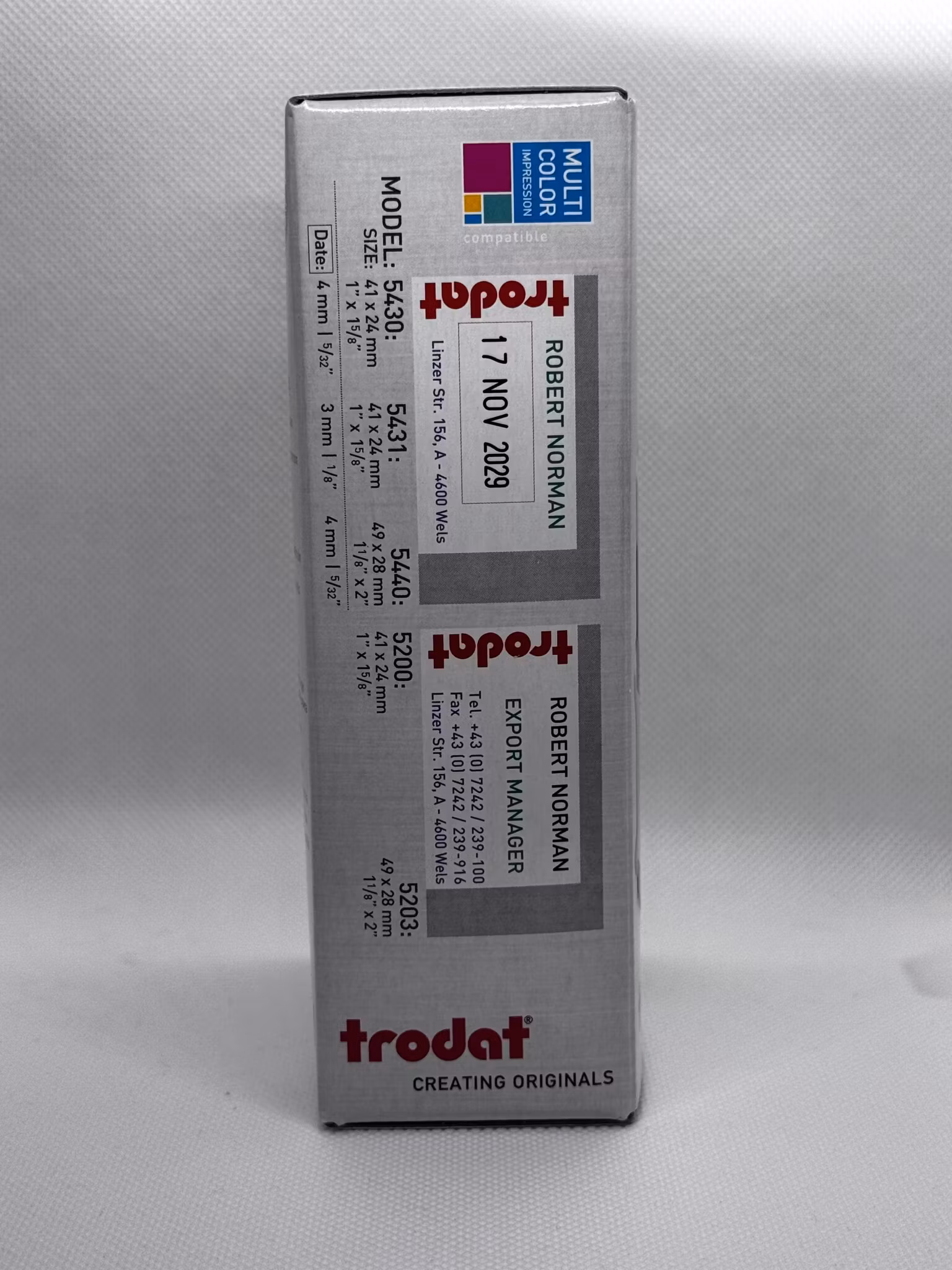 Trodat Stämpel 699 kr I lager. Lägg i korgen Produktbeskrivning Trodat professionell 5430Stämpel med tre rader.Text + Datum + Text